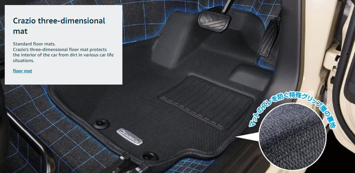 Introducing a 3D mat that pursues depth and fit with high-performance 3D technology. It protects the floor from water, dust and dirt, and is easy to put on and take off when cleaning. Perfect for dressing up or riding on the town.