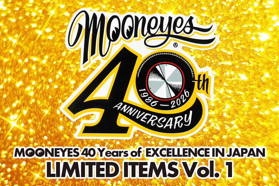 The vibrant yellow shirt is printed with the commemorative MOONEYES 40th Anniv. logo to mark this milestone.